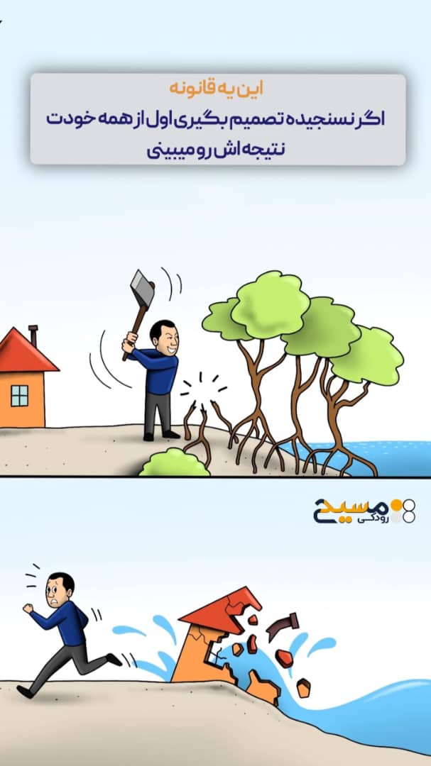 تصور کنید مردی برای منافع کوتاهمدت، درختان کنار ساحل خانهاش را قطع میکند. در کوتاهمدت شاید سود ببرد، اما کمی بعد، موجهای خروشان بدون مانع تا خانهاش پیش میروند و همهچیز را ویران میکنند.